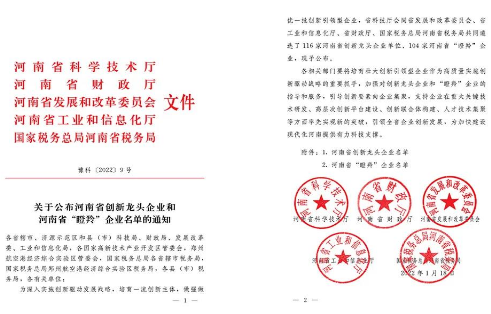 近日,河南省科学技术厅发布了《关于公布河南省创新龙头企业和河南省“瞪羚”企业名单的通知》(豫科〔2022〕9号),佛光发电再次获评“河南省创新龙头企业”。
