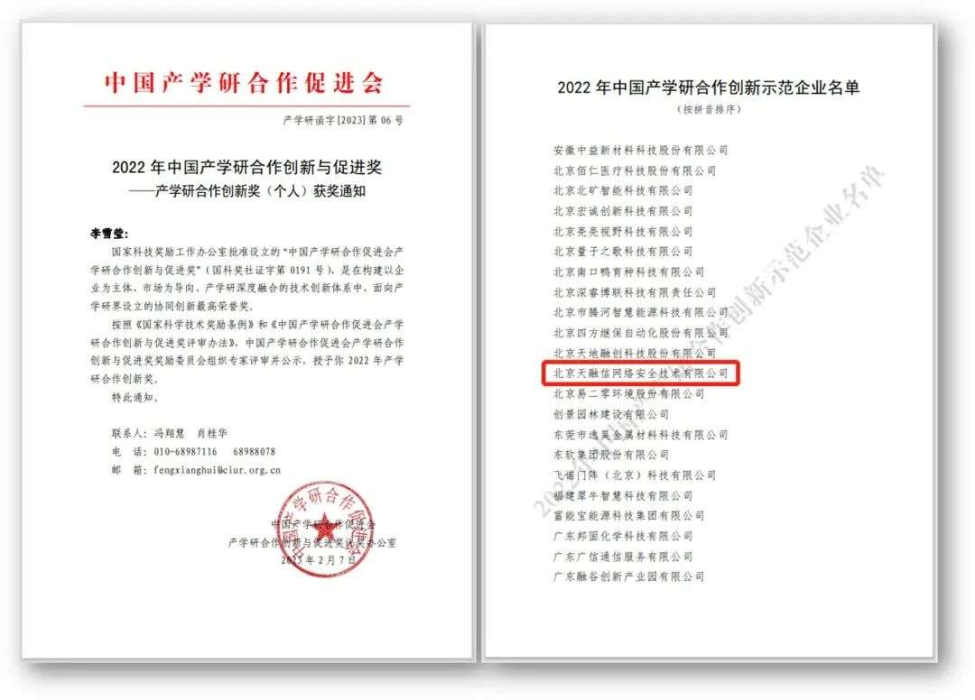 此次,天融信荣获2022年中国产学研合作创新示范企业、天融信科技集团董事长兼CEO李雪莹博士荣获产学研合作创新奖,充分展现了产学研界对天融信以及李雪莹博士过往工作成果的高度认可。