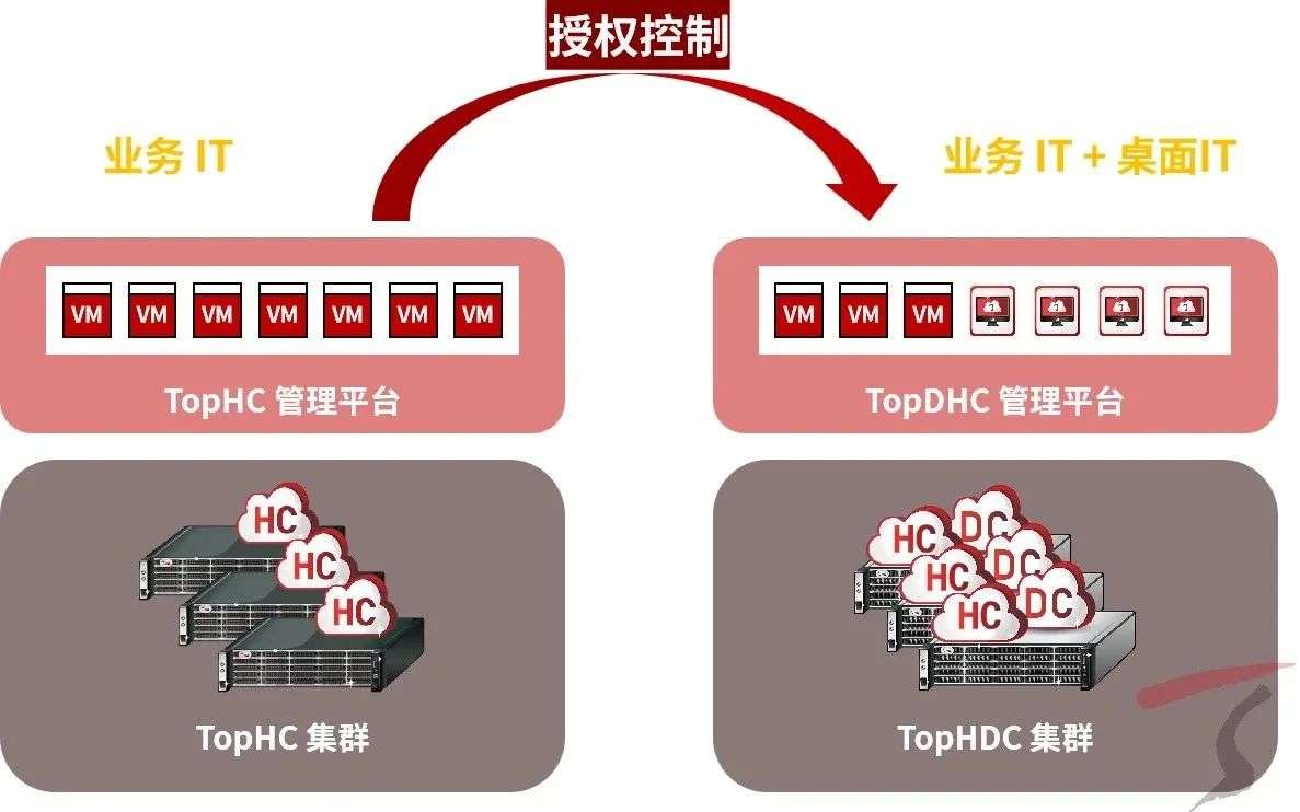 面向中小型企业数字化转型,业务IT与桌面IT需求并存,简化数据中心建设是客户所需。天融信桌面云支持融合架构交付,可基于一套平台为客户提供桌面虚机与业务虚机,满足客户最小化IT建设需求。同时客户可依据实际的业务需求,按需进行资源分配,随着业务增长亦可基于现有架构进行弹性扩容。