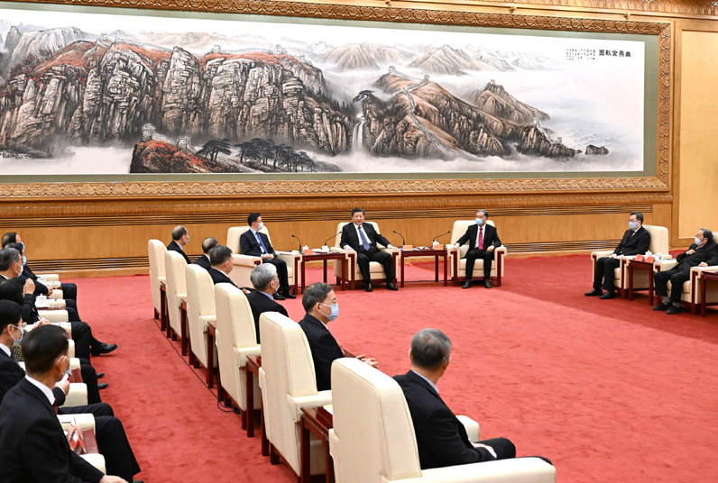 在听取丁仲礼致辞后,习近平发表了重要讲话。他强调,2021年是党和国家历史上具有里程碑意义的一年,也必将是载入史册的一年。我们办成了一系列大事要事,战胜了一系列风险挑战,推动党和国家事业取得新的重大成就。我们隆重庆祝中国共产党成立100周年,召开中共十九届六中全会、制定第三个历史决议,开展党史学习教育,如期打赢脱贫攻坚战,如期全面建成小康社会,实现第一个百年奋斗目标,开启全面建设社会主义现代化国家、向第二个百年奋斗目标进军新征程。我们从容应对百年变局和世纪疫情,完整、准确、全面贯彻新发展理念,构建新发展格局迈出新步伐,改革开放全面深化,民生保障扎实有效,生态文明建设持续推进,“十四五”实现良好开局。我们坚持人民至上、生命至上,坚持外防输入、内防反弹,坚持科学精准、动态清零,慎终如始抓好新冠肺炎疫情常态化防控,积极开展抗疫国际合作,经济发展和疫情防控保持全球领先地位。我们统筹发展和安全,注重防范化解各方面风险,规范社会主义市场经济秩序,弘扬社会主义核心价值观,营造积极健康、充满活力的发展环境。这些成绩的取得,是中共中央坚强领导的结果,也是包括各民主党派、工商联和无党派人士在内的统一战线广大成员同心奋斗的结果。实践证明,大家不愧是中国共产党的好参谋、好帮手、好同事。在此,我代表中共中央向大家表示衷心的感谢!